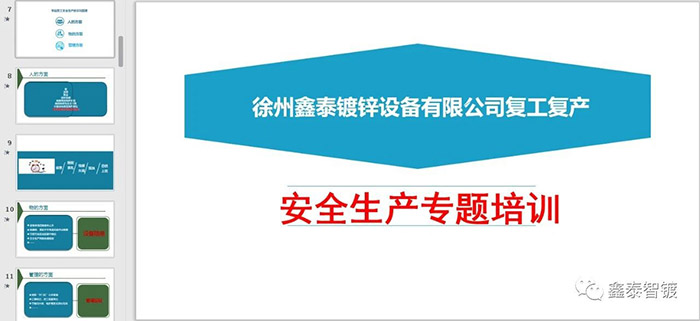 制作“徐州鑫泰鍍鋅設備有限公司安全生產專題培訓課件”,供大家自習。